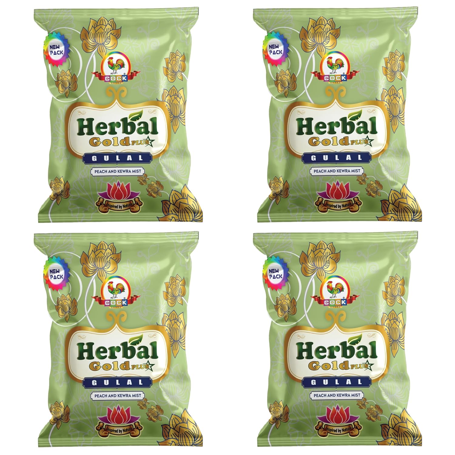 COCK BRAND Organic Holi Gulal Colour – Sandal – Orange | Herbal Gold Plus Gulal | Corn Starch Powder | Holi Colours Organic Powder – Non Toxic Eco Friendly – Easy to Remove Color (Pack of 4)