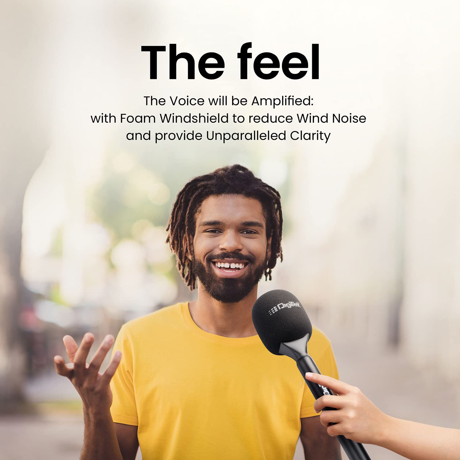 Digitek® (DHMA-101 Wireless Handheld Interview Adapter with Foam Windshield – Reduce Wind Noise, Compatible with DWM 101 & Others Wireless GO Trensmitter – Plug n Play for Outdoor Interviews & More
