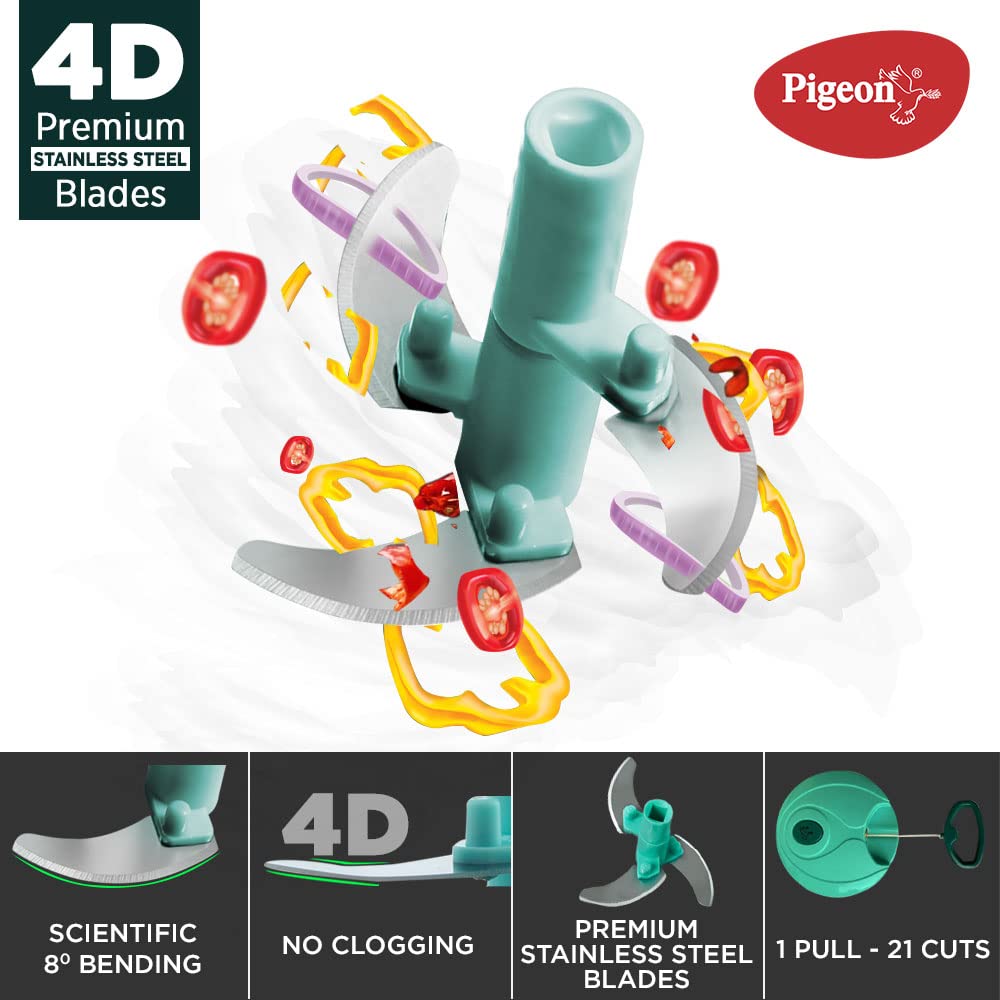 • Made from unbreakable ABS plastic for long-lasting use, Material: Polypropylene (PP);Sturdy 3-blade design made from Stainless Steel, As this chopper by Pigeon can be opened and detached easily, cleaning is an easy task using lukewarm water, mild detergent and a soft cloth.Power Requirement: Manual
