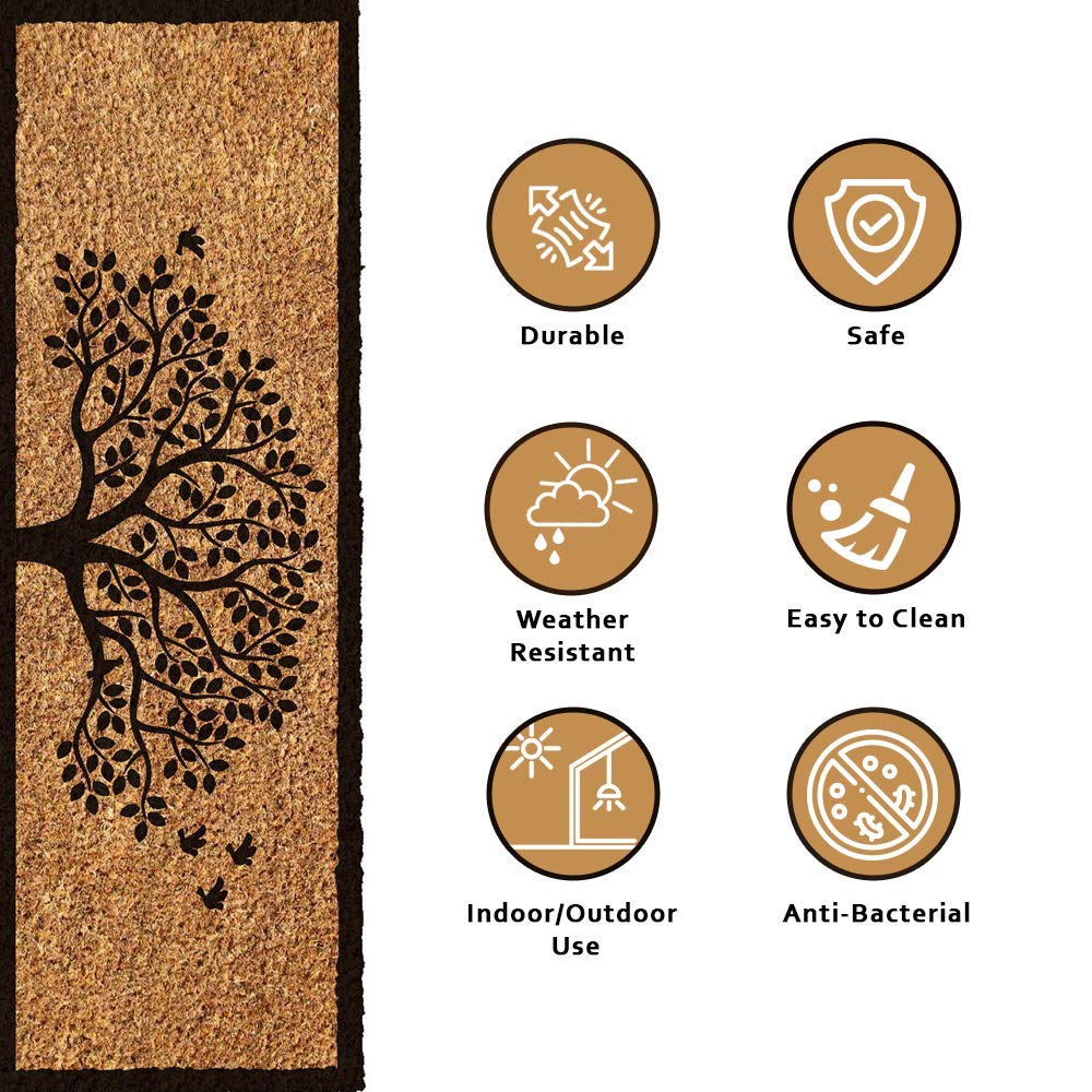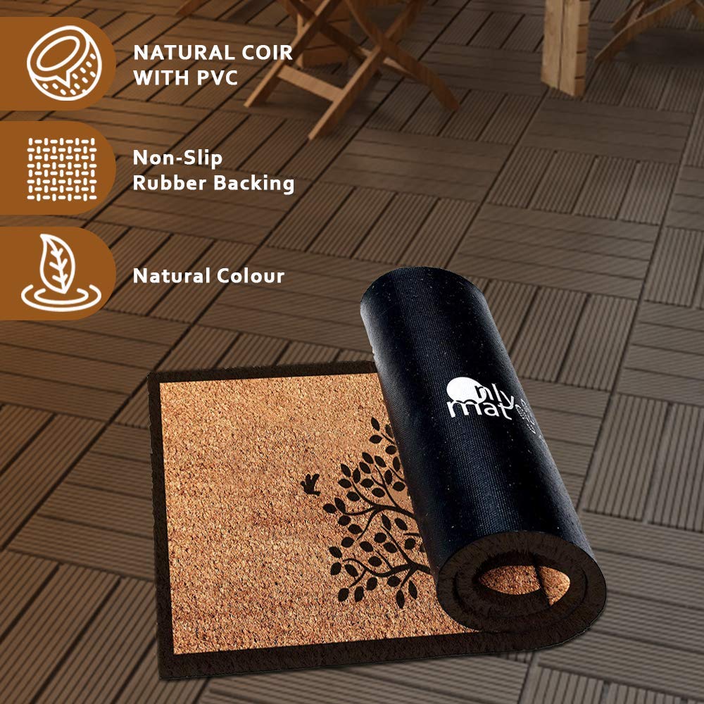 • EXTRAORDINARY TREE PRINT TO GREET WITH REGARD AND SMILE: Onlymat coco coir doormat comes with majestic tree imprints that will extend the welcoming savoir-faire with guests while you open the door. This sleek and large front door rug will also easily be your pet’s first choice for their rest. The natural fibres will give your pets a comfortable deck to lie on, and above all, they will appreciate their new rug friend! This coir rug can also be used as a litter mat and pet food mat.