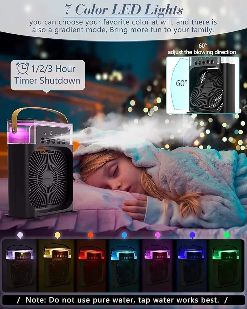 • ❄[Easy to Use] :It can spray cold air for several hours continuously to keep your body cool at night and make you sleep well. The lightweight fan and soothing night light make it ideal for a comfortable sleep all night.