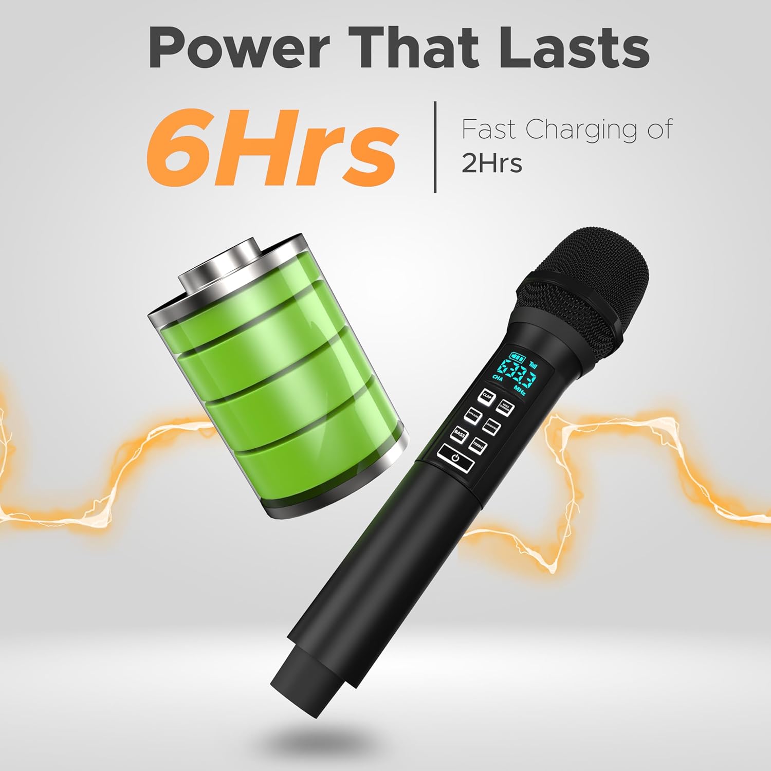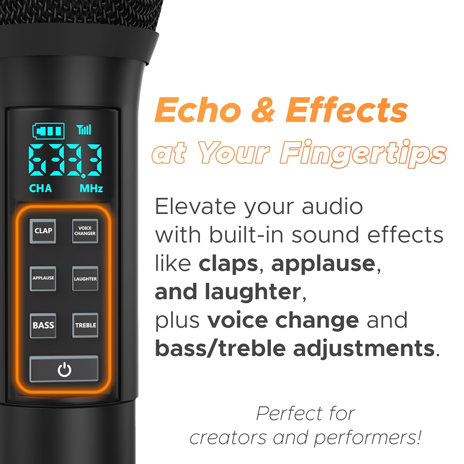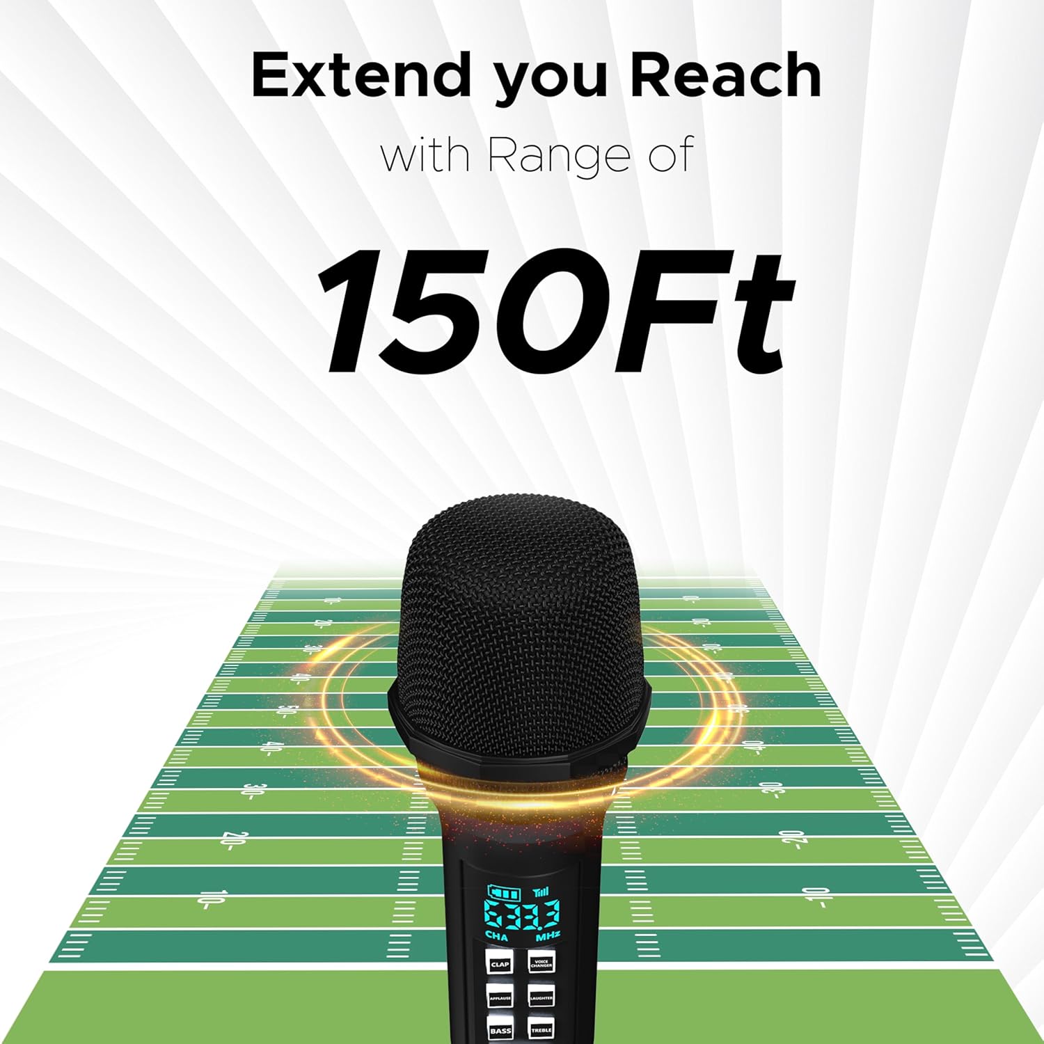 UHF Wireless Microphone System with in-Built Sound Card | Voice Change, Echo, Bass Etc. | 150ft Range | for House Parties, Outdoor Party, Singing, Classroom (D-346)