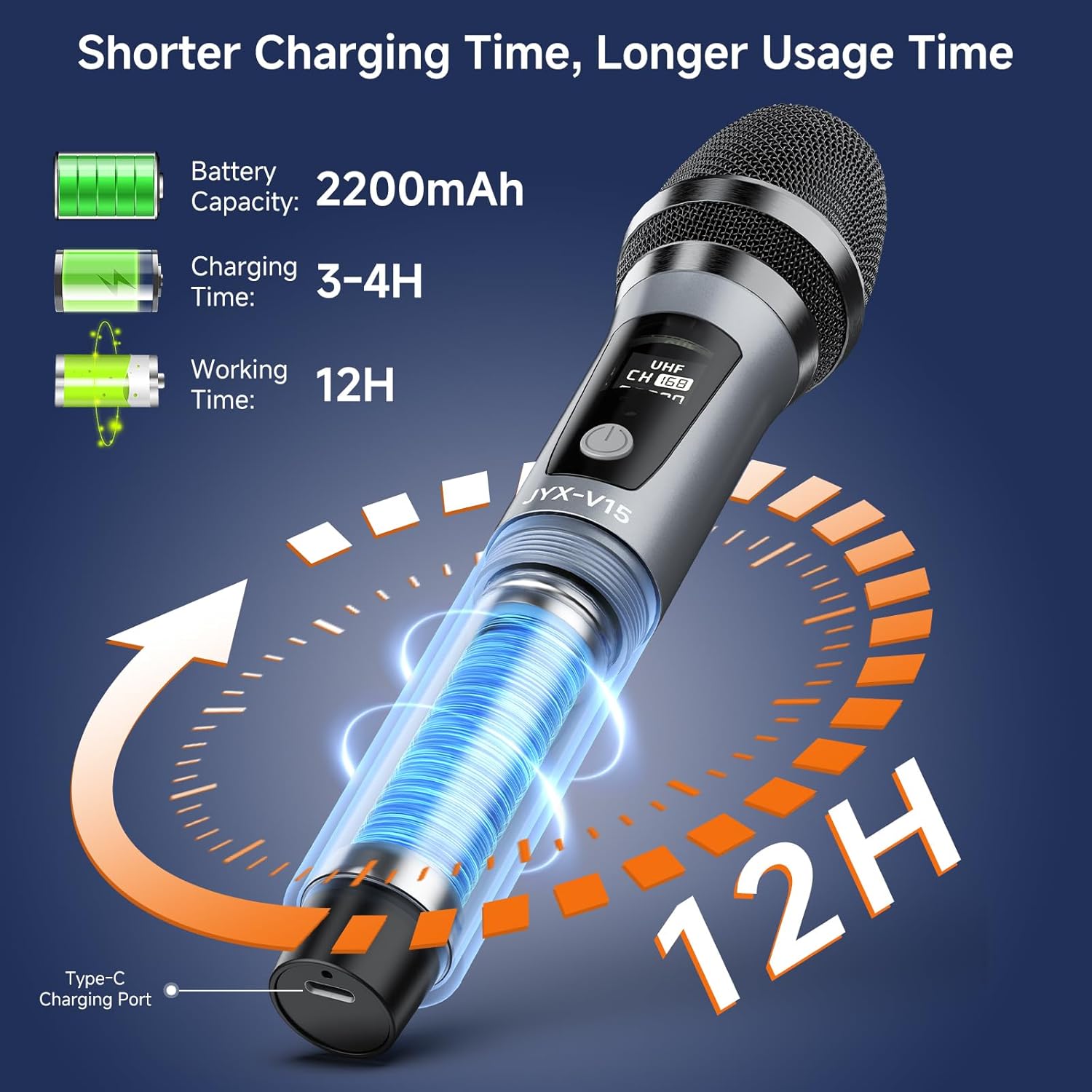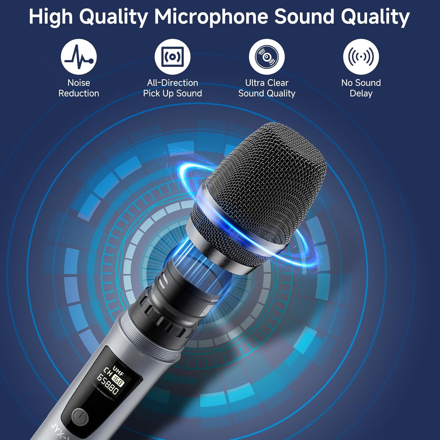 Equipped with professional chipset, this dynamic wireless microphone can reproduce clear sound without distortion.